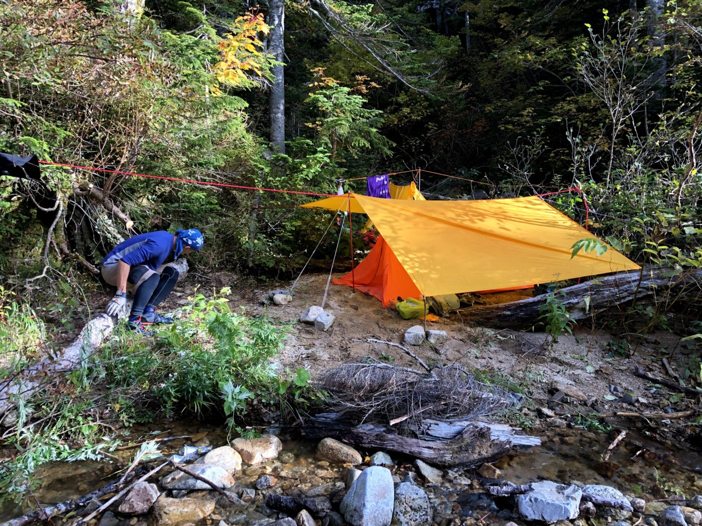 包み隠さず前もって言っておきます。ワイルド沢キャンプは汚れます、濡れます、臭くなります。登山界の3K、沢登り。沢の中をじゃぶじゃぶ歩き、藪を掻き分け、焚き火で服は燻され、装備の全ては砂にまみれます(笑)だからこそ全力で楽しむ姿勢が大事です。