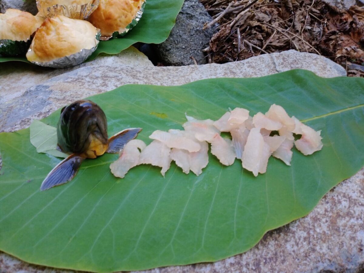 釣り上げた魚を晩御飯に焚き火で調理。明かりのない深い谷の中で過ごす一夜は格別です。そんなワイルドな体験をしたい方向けの、もとい、ガイドの趣味に付き合える方向けの体験です。