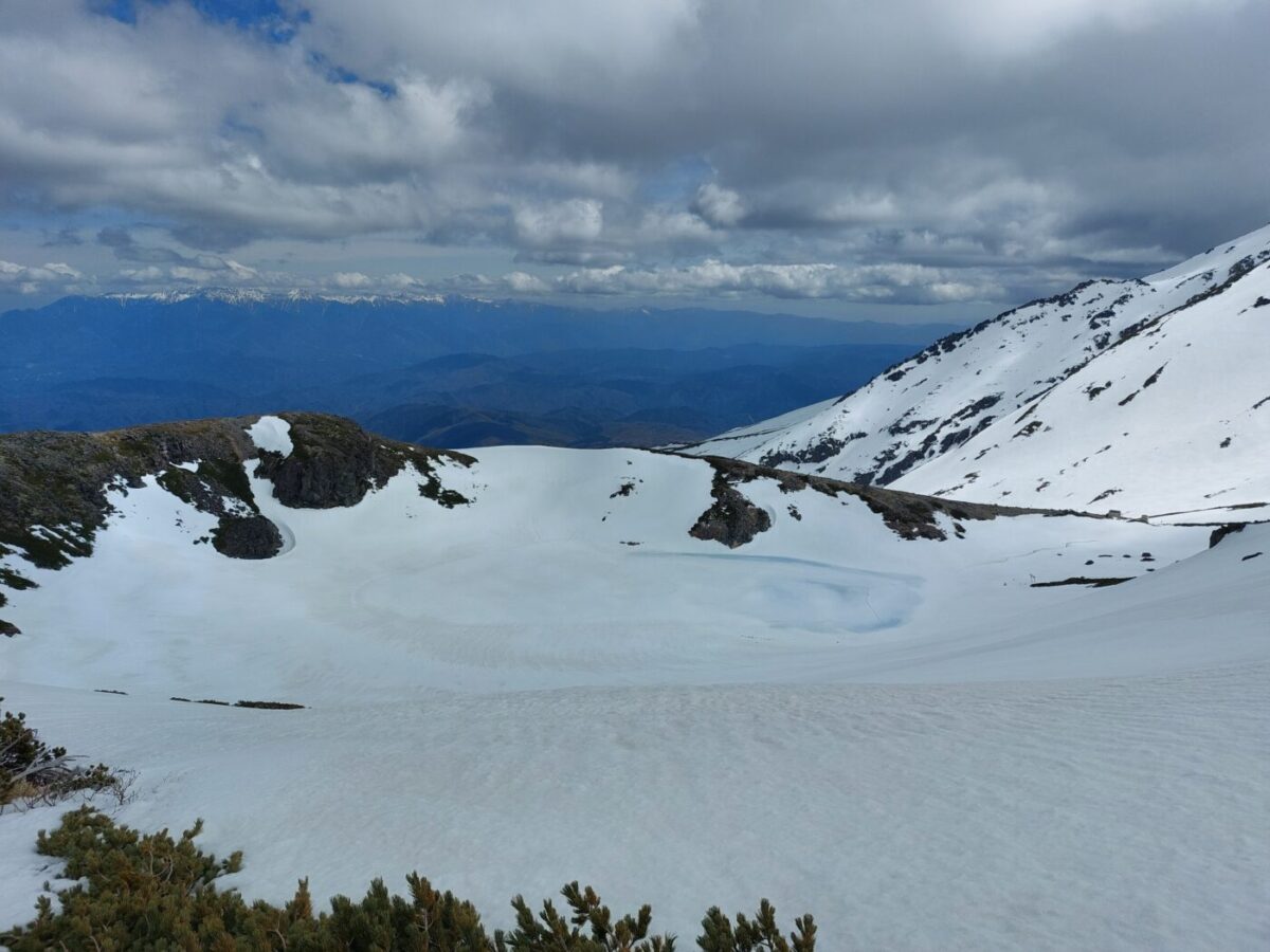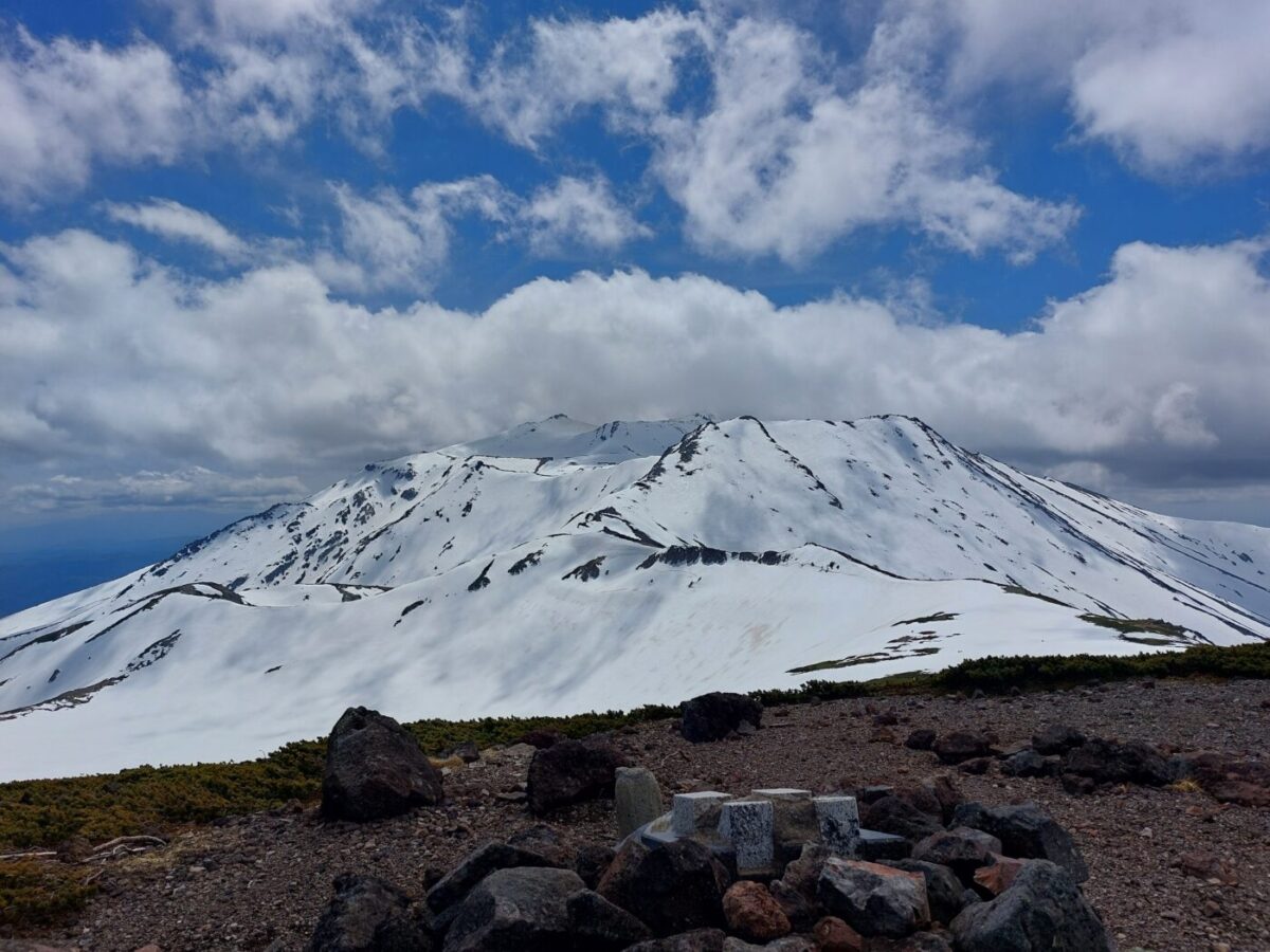 216WORKSのホームマウンテン御嶽山、厳冬期には少々厳しい山ですが残雪期に入る4月上旬からは快適に登ことができます。最北端の継子岳のピークからは北アルプスの眺めが抜群!天気が良ければ真っ白な山並みを堪能できます。