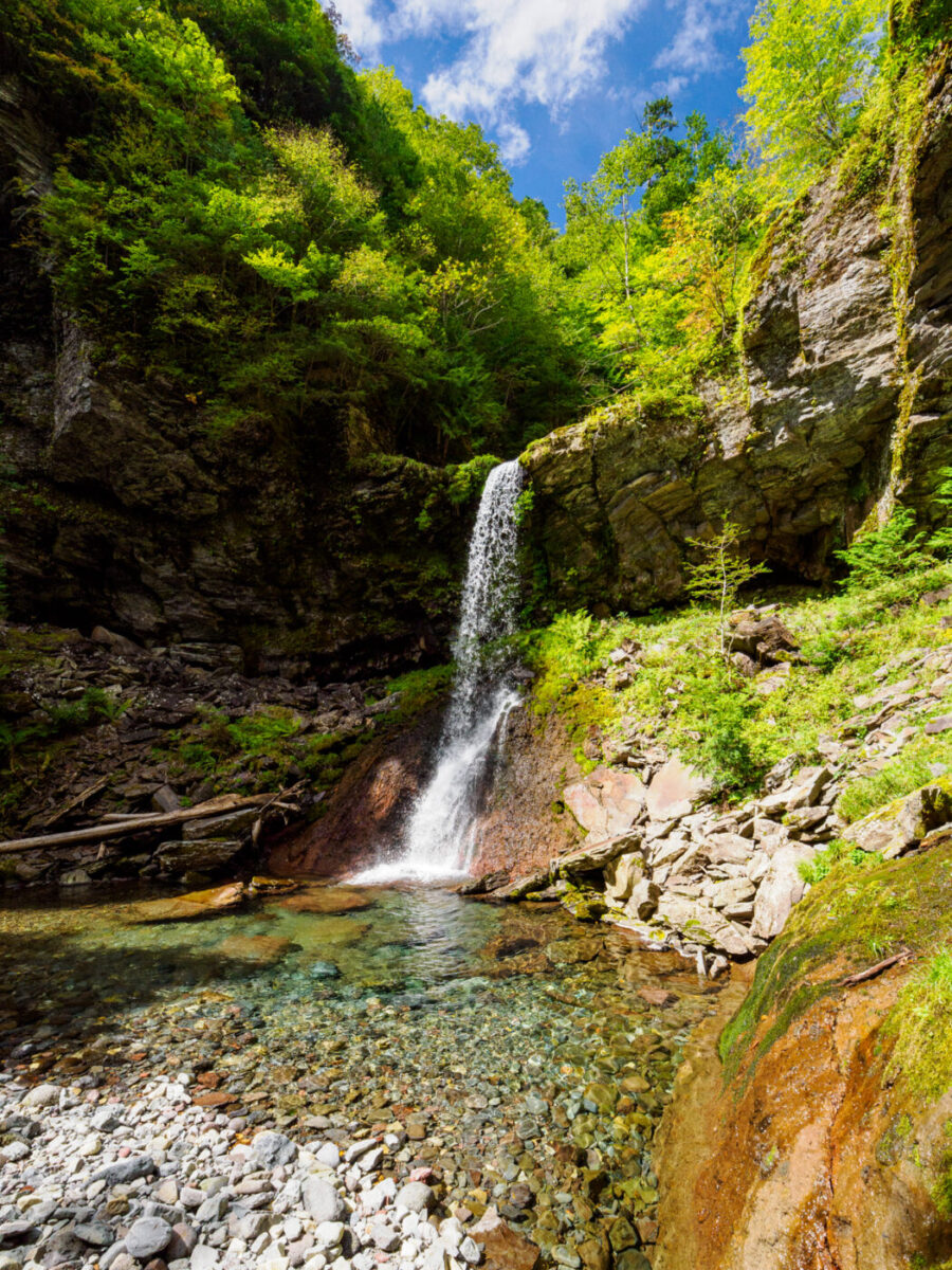 長い林道と藪との格闘、その末たどり着いた楽園のような景色、沢の中での一晩を過ごす体験など魂が震える感動が待っています!