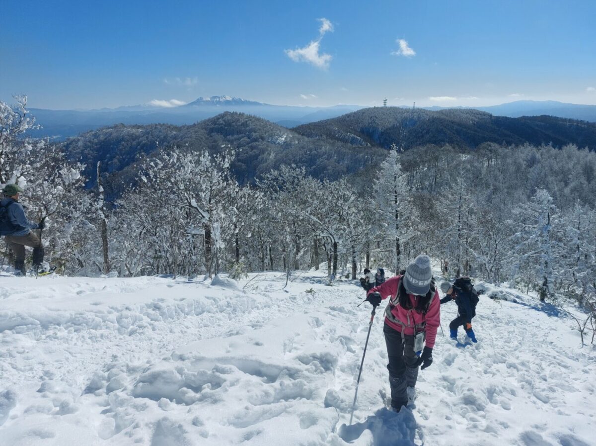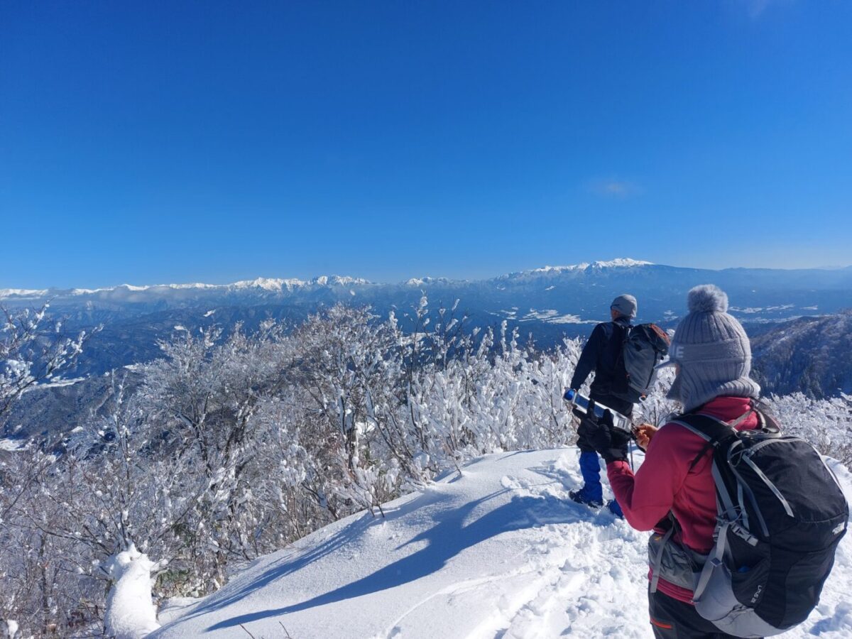 雪山の魅力を存分に楽しめる猪臥山(いぶしやま)で冬の一日を思い切りEnjoyしましょう!登山口から山頂まで針葉樹植林地(暗)→広葉樹天然林(陽)からの樹木がなくなり開ける稜線への移り変わりの変化がたまりません!1500m級の低山なのにアルプスの雪山のような景色を楽しめるコスパがとーっても良い山です。コンディションによってはラッセルはありますが、人気の山なのでトレースがしっかりついていることが多く、軽アイゼンとストックで気軽に登ることができます。行動時間や距離も短いので雪山経験が無い方でも初めての雪山としてチャレンジすることもできます。